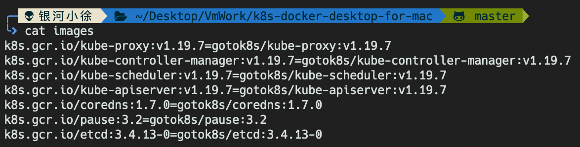 所需镜像可以手动一个个下载,当然也有人准备好了脚本可以一键下载,脚本仓库地址:https://github.com/maguowei/k8s-docker-desktop-for-mac