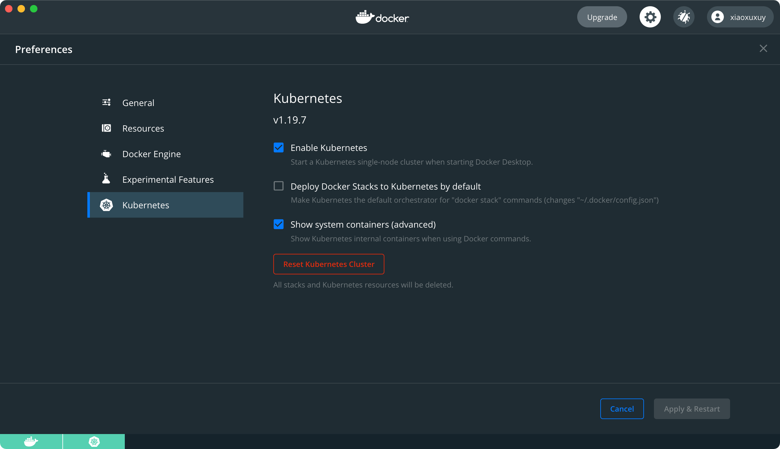 下载完成后,重启 Kubernetes,验证 Kubernetes 集群状态: